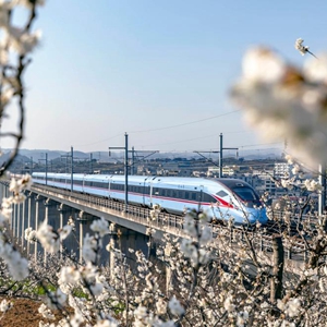 动车组列车在成贵高铁贵州黔西段行驶(2022年3月7日摄)。 新华社发(范晖 摄)