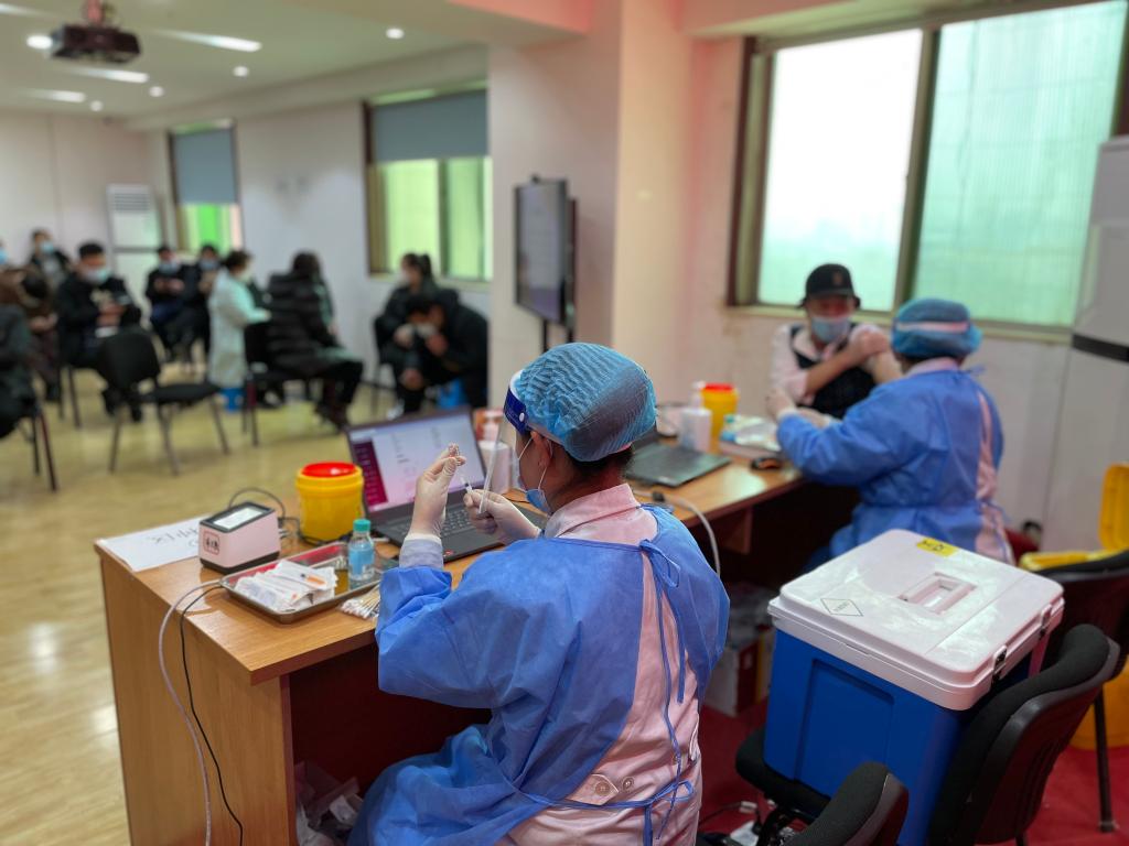 陕西西安,一名老人正在接种新冠病毒疫苗。
