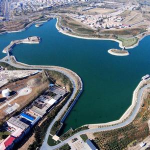 图为2014年11月14日拍摄的团城湖调节池(左上)和团城湖明渠(右下)新华社记者 邢广利 摄)