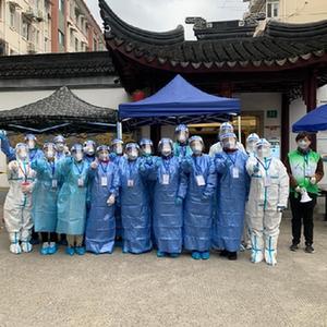 虹储居民区核酸检测采样点,党员干部、医务工作者以及来自各行各业的志愿者共同抗疫。受访单位供图