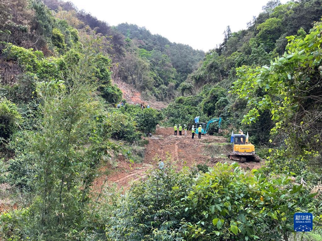 3月22日,在广西藤县埌南镇莫埌村,挖掘机开挖进入东航MU5735客机坠毁事故现场的通道,为后续工作铺平道路(手机照片)。新华社记者 周华 摄
