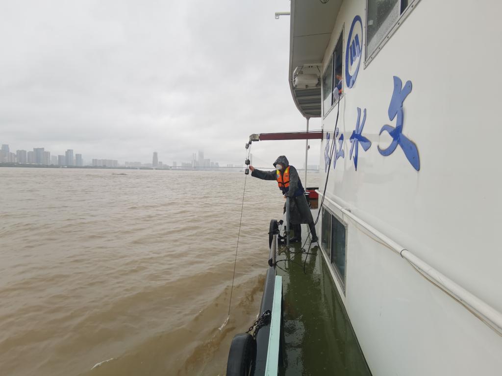 2020年流域性大洪水期间,长江委水文中游局汉口分局职工正在开展高洪取样。(受访者供图)