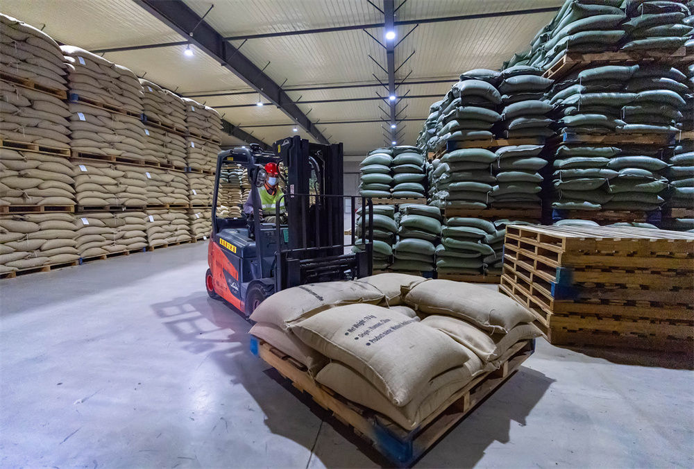 工作人员在云南普洱雀巢咖啡中心仓库内工作(2月22日摄)。新华社记者 陈欣波 摄