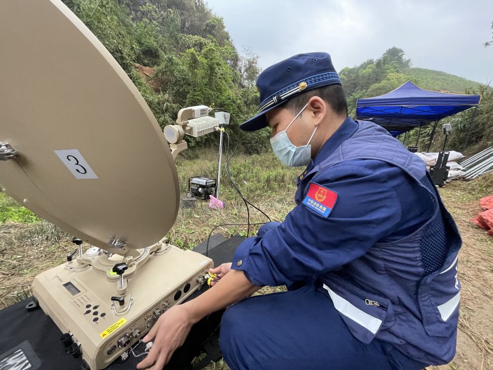 几经波折,我们赶到前方指挥部时,天已经完全黑了下来,临时照明设备将前方指挥部照得一片通明,通信保障工作人员守在应急通信设备前忙碌着。