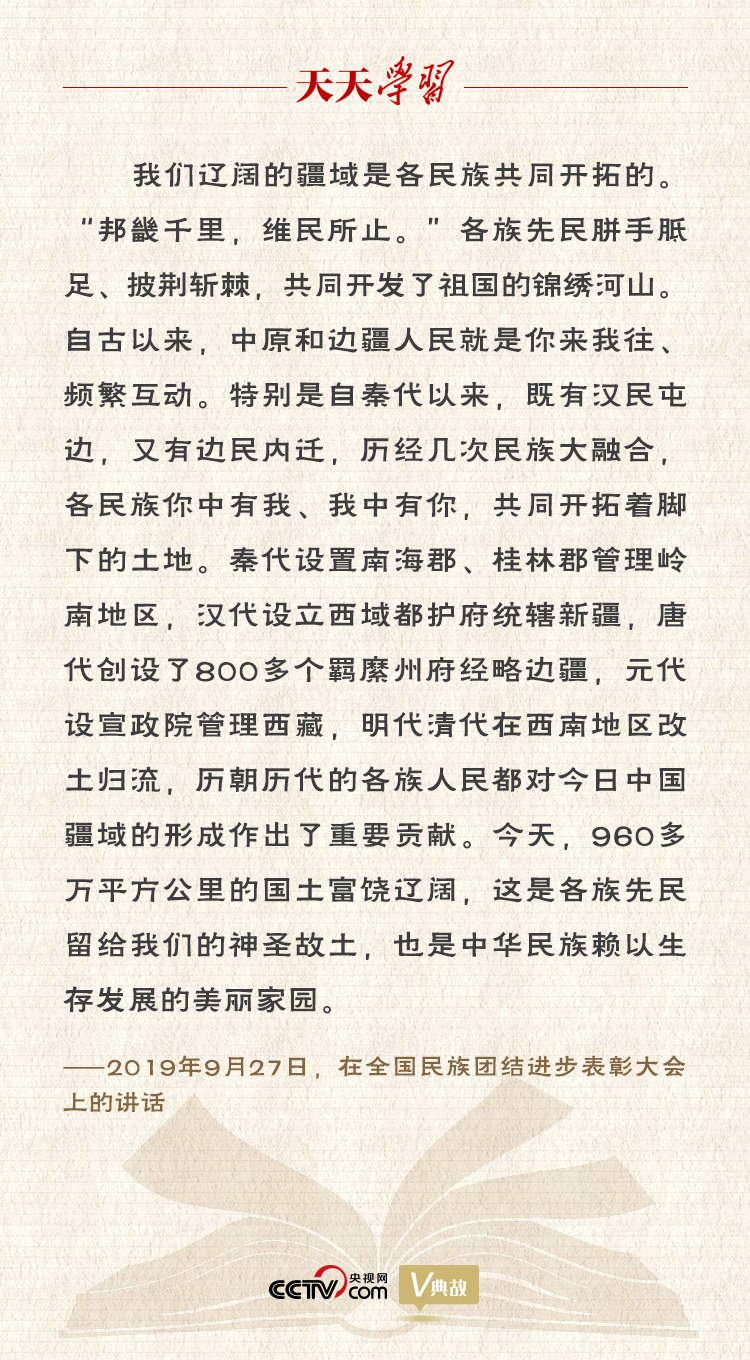 五十六个民族五十六朵花,朵朵开在阳光下。我们伟大的祖国,幅员辽阔,文明悠久,中华民族多元一体是先人们留给我们的丰厚遗产,也是我国发展的巨大优势。在全国民族团结进步表彰大会上,习近平总书记深情回顾了中华民族的发展史,指出我们辽阔的疆域是各民族共同开拓的,我们悠久的历史是各民族共同书写的,我们灿烂的文化是各民族共同创造的,我们伟大的精神是各民族共同培育的。一部中国史,就是一部各民族交融汇聚成多元一体的中华民族历史,就是各民族共同缔造、发展、巩固统一的伟大祖国的历史。他发出号召:“实现中华民族伟大复兴,需要各民族手挽着手、肩并着肩,共同努力奋斗。”
