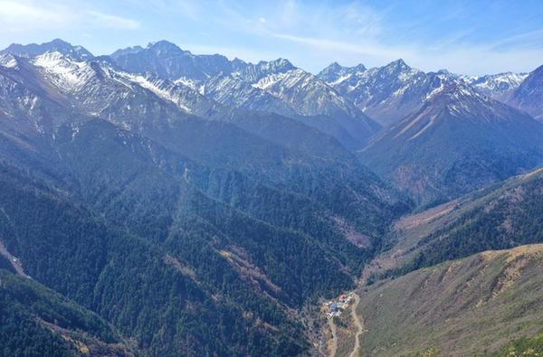 3月23日拍摄的卧龙自然保护区(无人机照片)。新华社记者 刘坤 摄