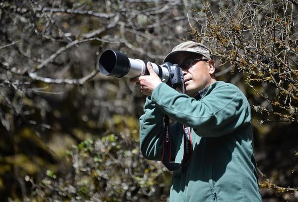 3月23日,何晓安在卧龙自然保护区内拍鸟。新华社记者 刘坤 摄