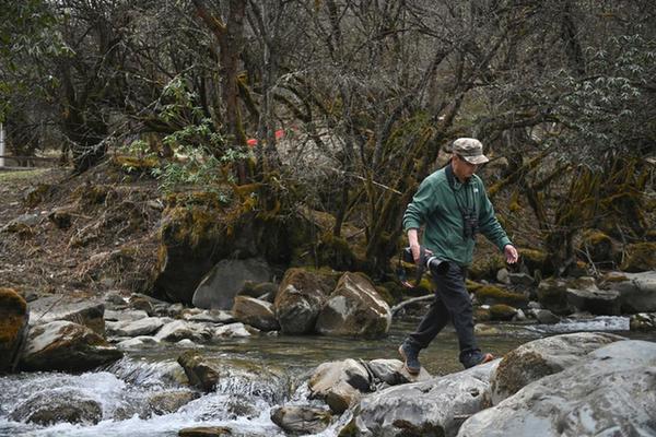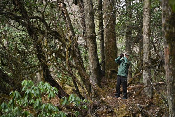 3月23日,何晓安在卧龙自然保护区内寻找鸟类。新华社记者 刘坤 摄