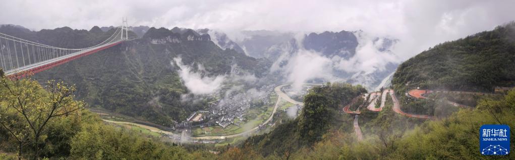 3月31日拍摄的矮寨大桥(手机全景照片)。新华社记者 赵众志 摄