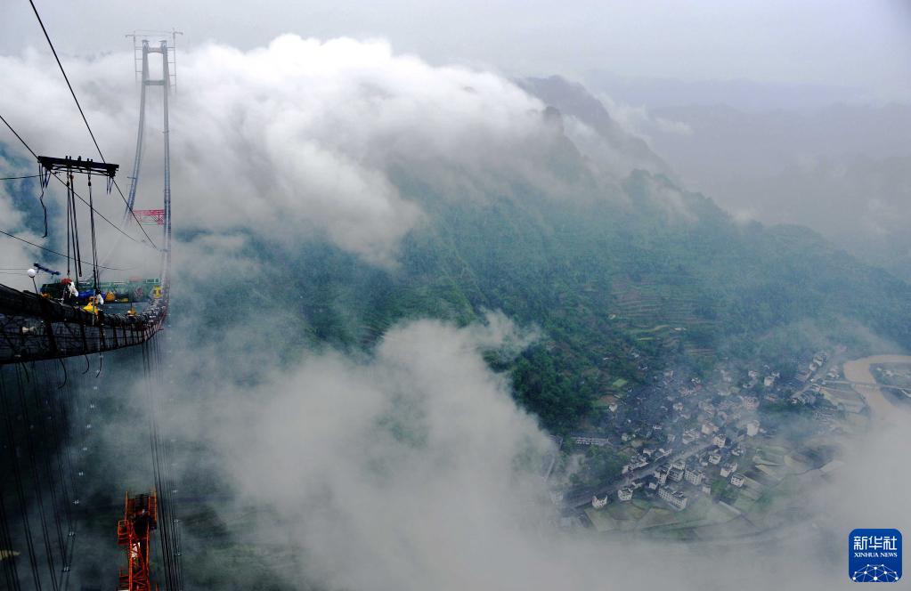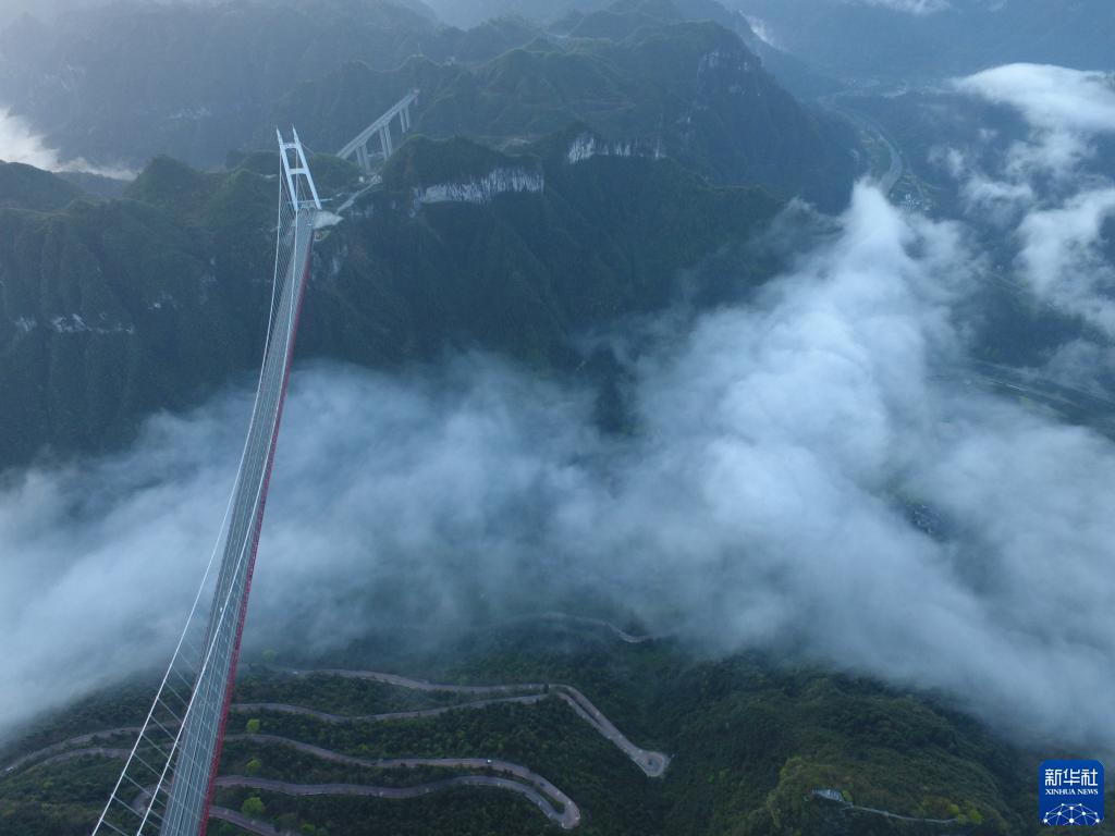 站在矮寨大桥一侧的山岭上远眺,这座主跨1176米、没有桥墩的大桥如同“悬挂”在峡谷上方300多米的高空中,往来车辆川流不息。