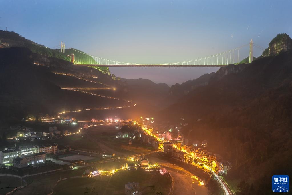 2016年12月5日拍摄的矮寨大桥夜景。新华社发(尚林 摄)