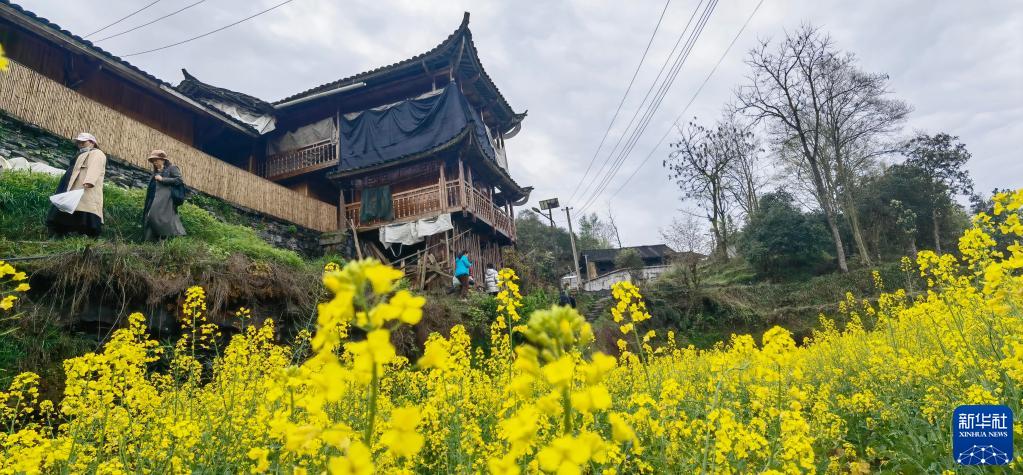 3月27日,游客在家庭村游览。新华社记者 赵众志 摄