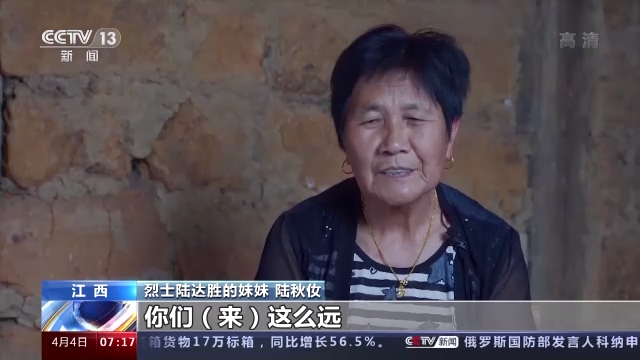 烈士陆达胜的妹妹 陆秋㚢:万万没想到。你们(来)这么远,还不是说在县里,不是说在乡里,而是隔山隔水隔几个省来找我们烈属。