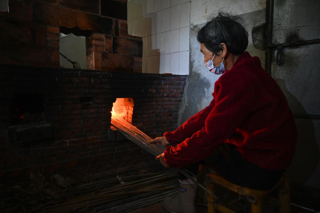 4月5日,在泉州市鲤城区浮桥街道新步社区,一位爱心厨房的阿嬷在烧柴生火。新华社记者 周义 摄