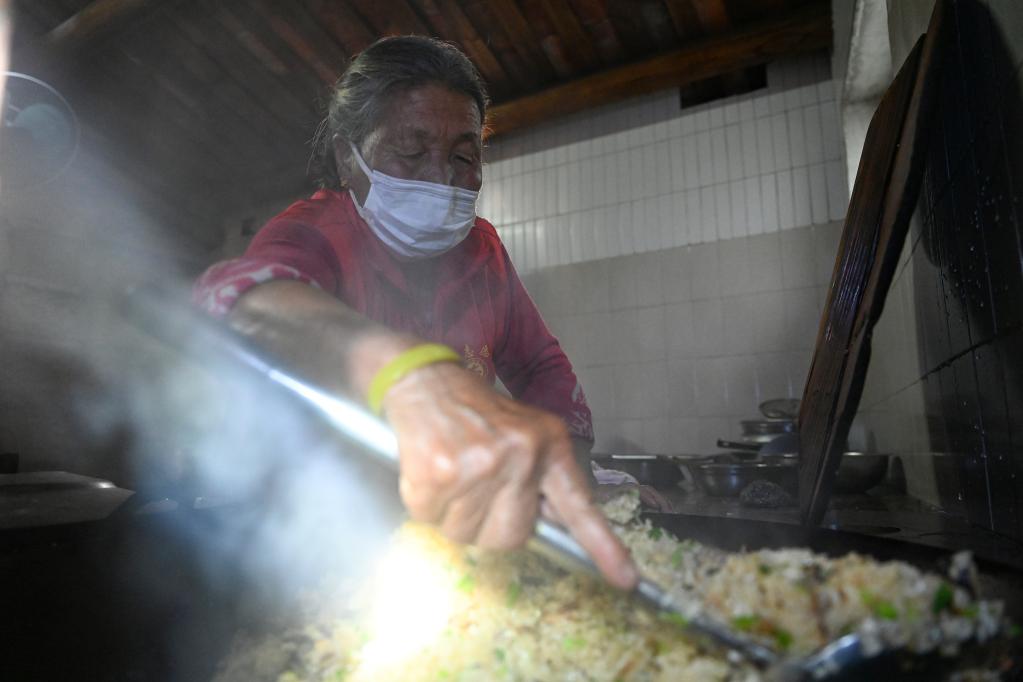 4月5日,在泉州市鲤城区浮桥街道新步社区,爱心厨房的“掌勺阿嬷”谢惠在制作当天的暖心午餐——咸饭。新华社记者 周义 摄