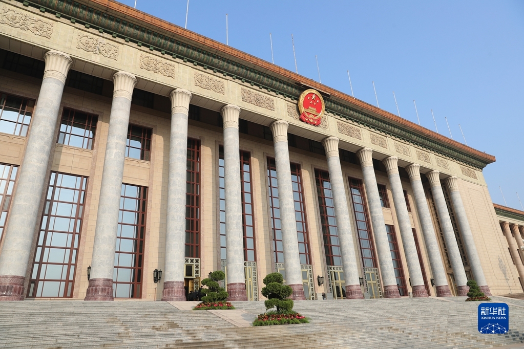 4月8日,北京冬奥会、冬残奥会总结表彰大会在人民大会堂隆重举行。图为人民大会堂外景。 新华网 焦鹏 摄