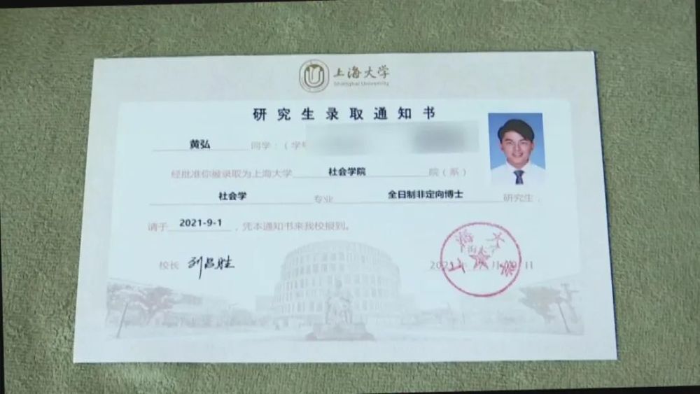 2021年8月,黄弘考上了