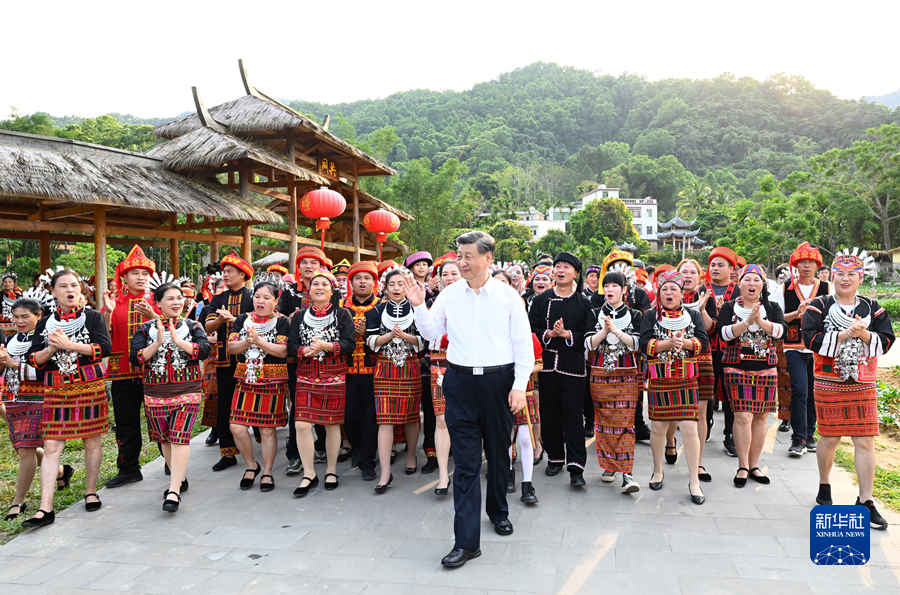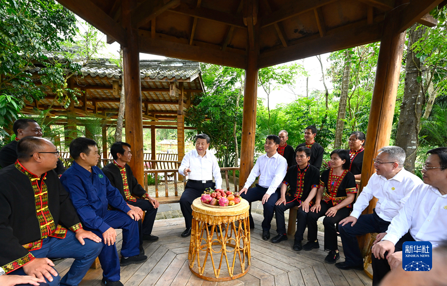 4月10日至13日,中共中央总书记、国家主席、中央军委主席习近平在海南考察。这是11日下午,习近平在五指山市水满乡毛纳村同村民们亲切交流。新华社记者 谢环驰 摄