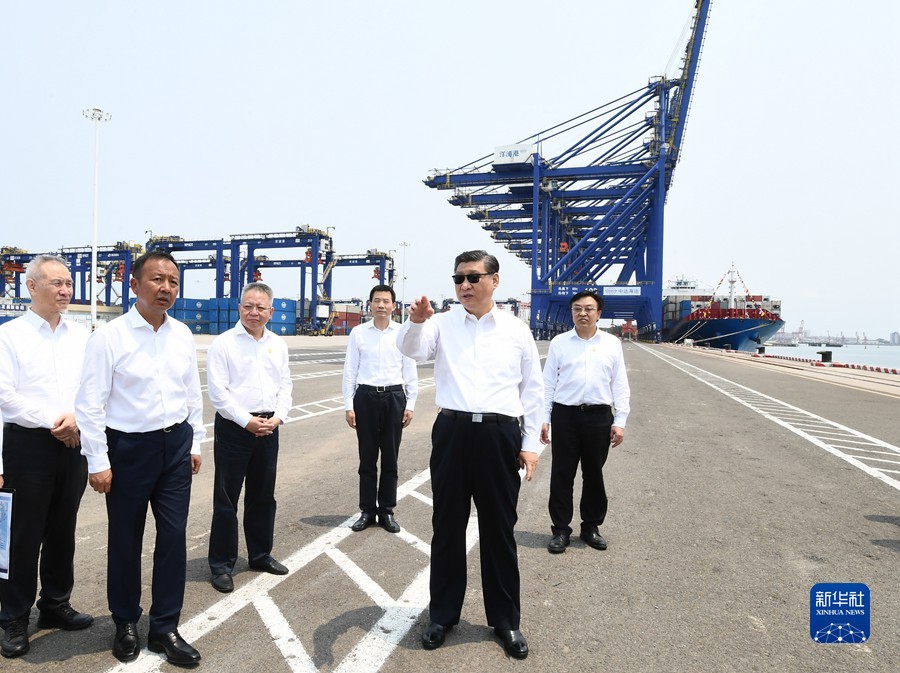 4月10日至13日,中共中央总书记、国家主席、中央军委主席习近平在海南考察。这是12日上午,习近平在洋浦经济开发区考察。新华社记者 李学仁 摄