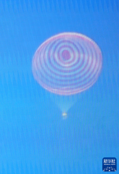 神舟十三号载人飞船返回舱主降落伞打开,太空出差半年的航天员翟志刚、王亚平、叶光富即将返回地面。(记者米思源、黄一宸)