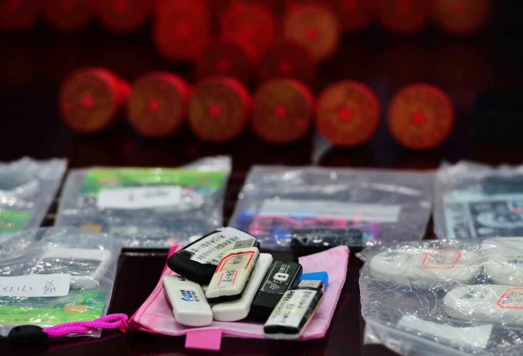 公安、税务部门收缴的公司印章等作案工具(资料图)。新华社记者 魏培全 摄