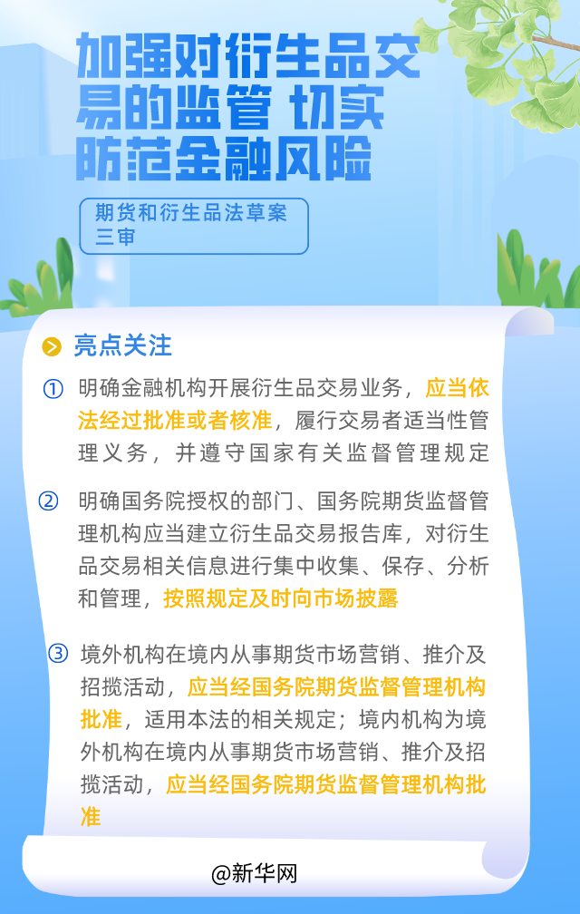 新华网北京4月19日电(记者 卢俊宇)十三届全国人大常委会第三十四次会议4月18日在北京开幕。本次常委会会议审议期货和衍生品法草案、职业教育法修订草案、体育法修订草案、黑土地保护法草案、妇女权益保障法修订草案。一起来看,有哪些亮点值得关注?