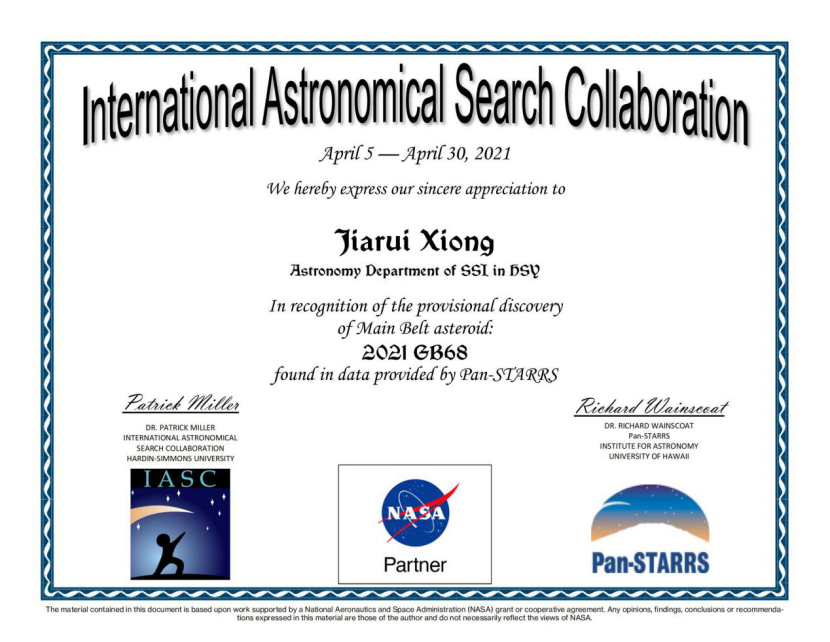 此次发现源于一个国际小行星搜寻活动(简称IASC)