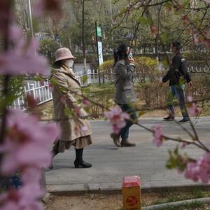 4月23日,在青海省西宁市昆仑西路,市民正在街头散步。(新华社记者 周盛盛 摄)