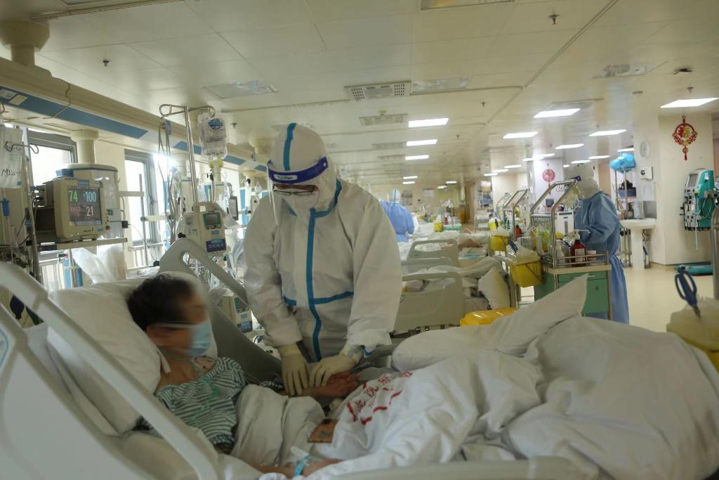 医护人员正在ICU病区照顾患者。(受访者供图)