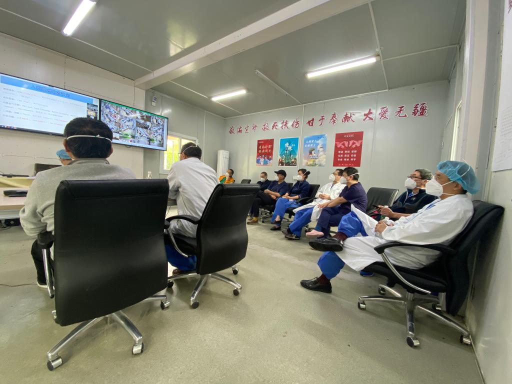 这里,每天下午都会举行线上会诊。定点医院内的医生和母体医院的专家就在院重症患者的诊疗方案,逐一探讨,精准制定“一人一策”。