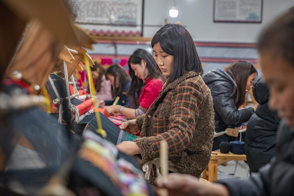在西兰卡普非遗工坊,返乡“90后”李蔓正仔细编织着西兰卡普织锦。李蔓说,公司为每个员工都购买了社会保险,每月基本工资有2000多元。除了做织工,她还负责工坊产品的电商销售工作。