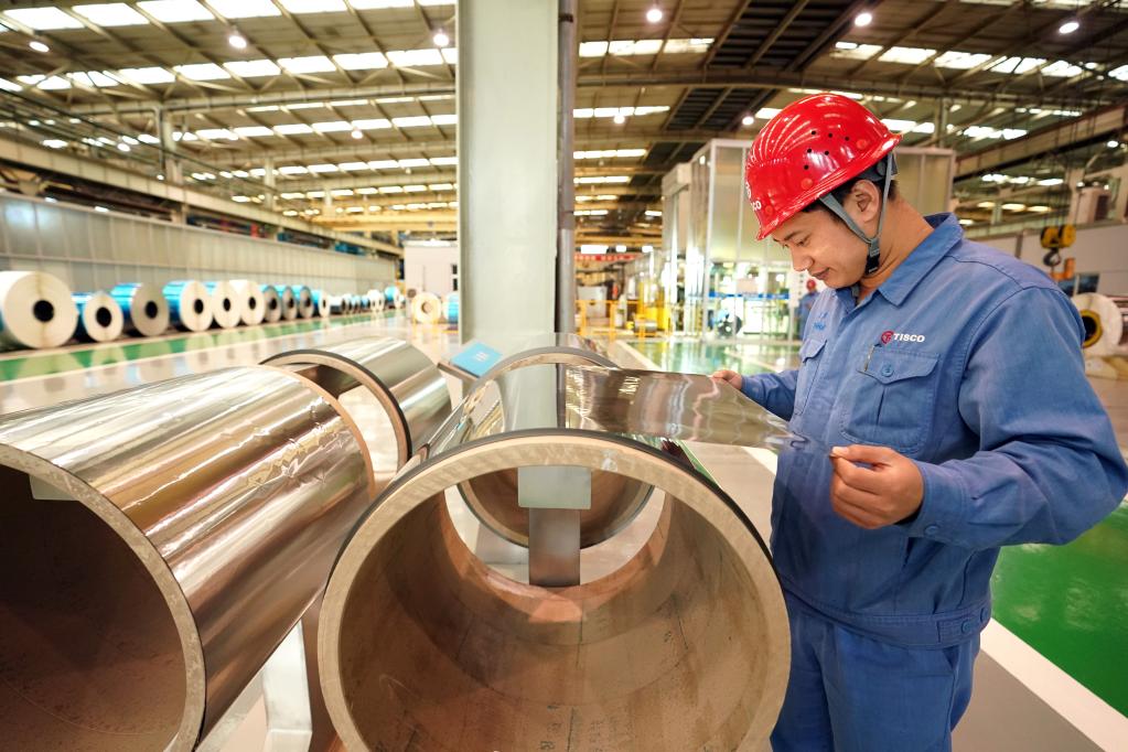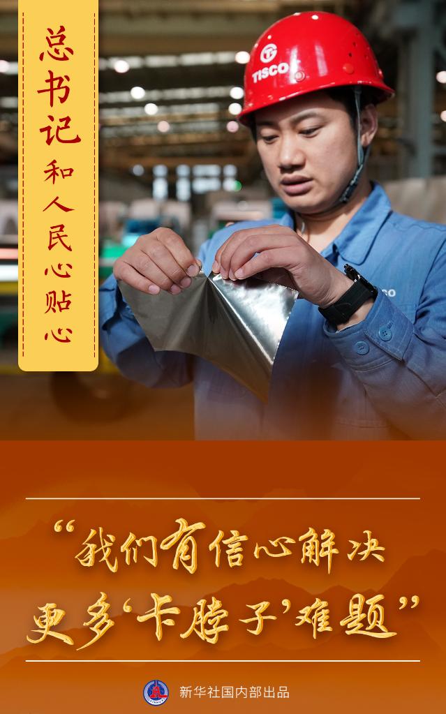 在生产超薄精密不锈带钢的机组前,总书记停下脚步,拿起一片“手撕钢”仔细察看,用手指轻轻扭折了一下,不禁称赞:“工艺确实好,就像锡纸一样薄,百炼钢做成了绕指柔。”