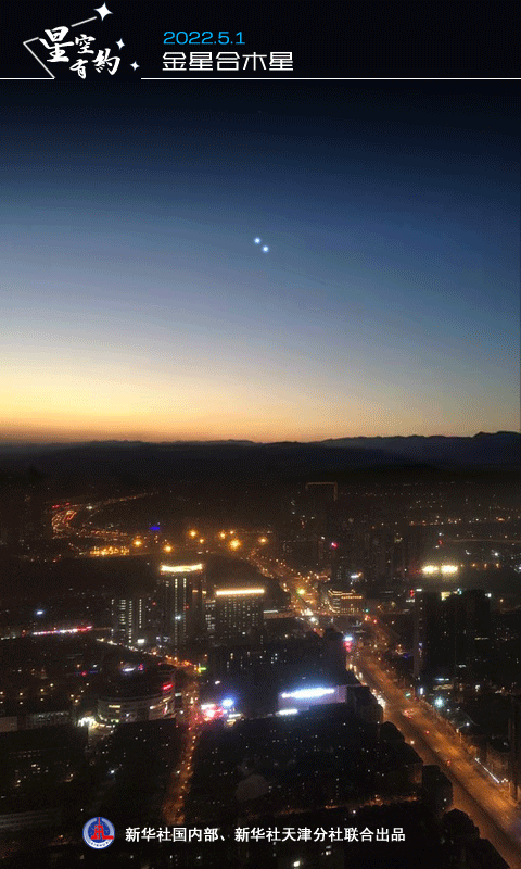 “本次相合,金星亮度为-4.1等,木星亮度为-2.1等,两星最近时的角距离仅有0.25度,相当于满月视直径的一半左右,肉眼看上去几乎重叠在一起,绝美异常。”天津市天文学会理事、天文科普专家修立鹏说,从金星和木星升起到天亮,还有一个多小时的时间,感兴趣的公众可以从容地欣赏和拍摄。“由于亮度很高,金星和木星几乎能在白天的天光背景中浮现出来,所以有望从凌晨日出前到太阳升起后持续观测,感兴趣的公众不妨来一次蓝天下找寻金星和木星的挑战。”