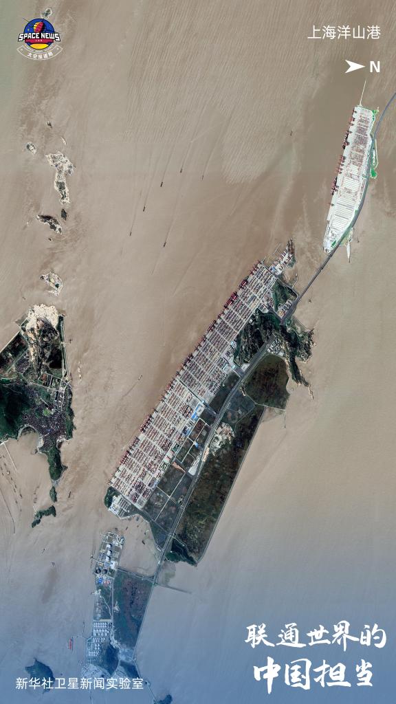 这里是世界最大的海岛型深水人工港。自2005年,洋山深水港区开港以来,集装箱吞吐量已累计完成2亿标准箱。