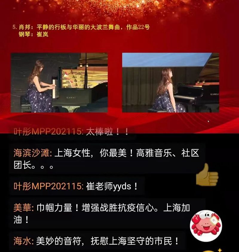 上海市妇联联手上海音乐学院、上海市三八红旗手联谊会,以音聚力,向光而行,在线为广大网友举办了一堂红色音乐赏析课。上海音乐学院钢琴副教授崔岚带来“爱国主义的诗意情怀”音乐宣讲分享会。