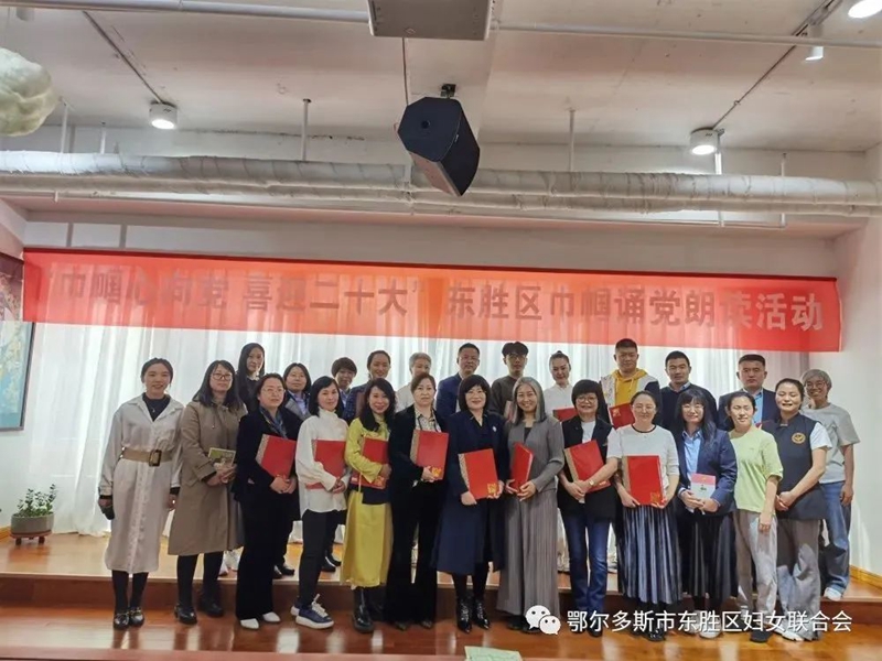 为迎接党的二十大胜利召开,引导广大妇女群众更加自觉地跟党奋进新征程、巾帼建功新时代,鄂尔多斯市东胜区妇联联合东胜区家庭教育基地内蒙古立心家庭教育研究院鄂尔多斯分院举办“巾帼心向党 喜迎二十大”东胜区巾帼诵党朗读活动。