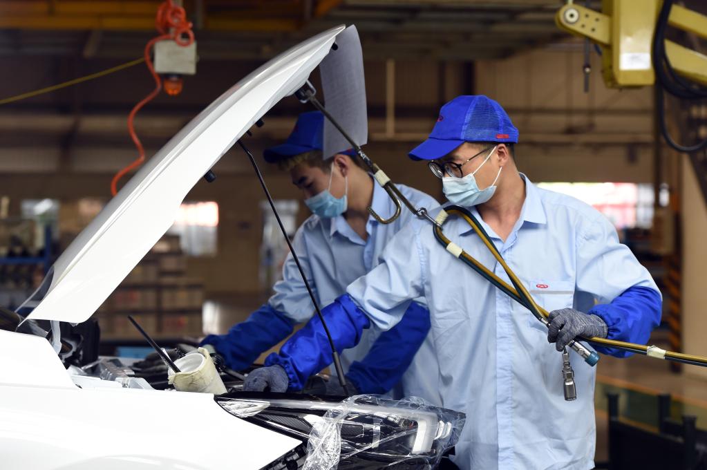 2020年5月20日,在位于安徽省芜湖市的奇瑞汽车股份有限公司,工人在总装三车间忙碌。新华社发(周牧摄)