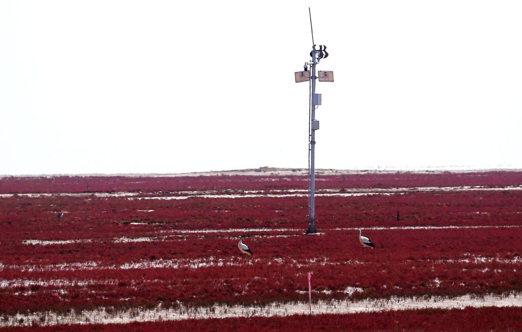 这是山东黄河三角洲国家级自然保护区里的生态环境监控设备(资料照片)。新华社发