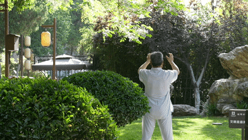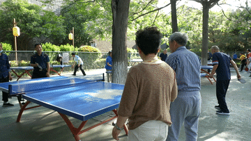 老汉在比赛间隙熟练地举起一瓶啤酒