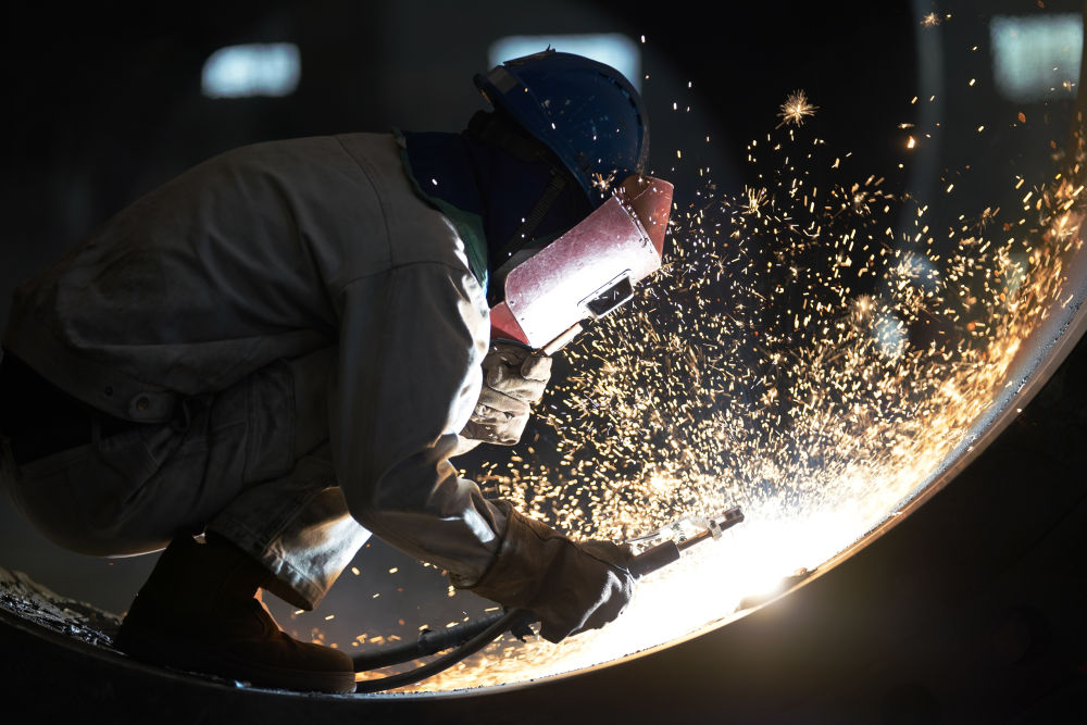 4月14日,在哈电集团哈尔滨锅炉厂有限责任公司生产车间,工人在进行生产作业。