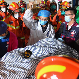 3日4时10分许,医务人员进入搜救现场评估获救女子生命体征。约5分钟后,获救女子被抬出事故现场。“和她交流,能有快速的反应,证明基本的神志和生命体征是正常的。”现场一名来自湘雅附三医院的医务人员告诉记者。
