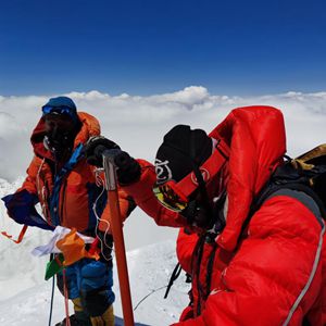 5月4日,科考队员登上珠穆朗玛峰峰顶。新华社特约记者 索朗多吉 摄