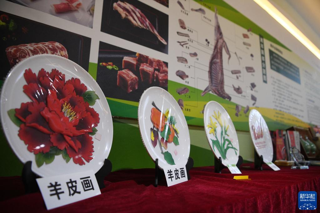 盐池滩羊产业发展集团展出的羊皮画(5月2日摄)。
