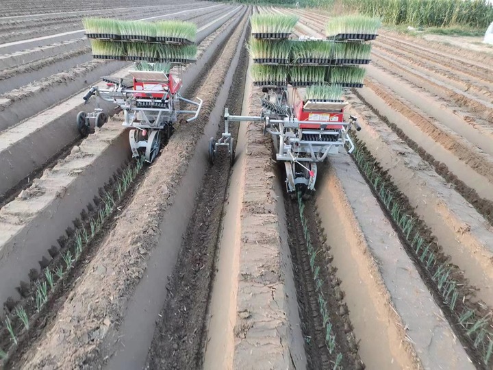 “有了机器,1个人一天能栽8到10亩大葱,比人工的效率高10倍左右。”周峰高兴地说。