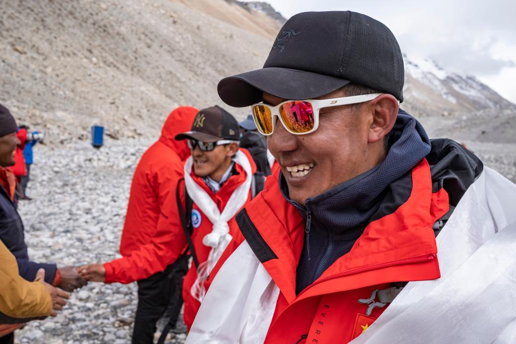 珠峰科考登顶工作小组组长德庆欧珠返回大本营(5月5日摄)。新华社记者 孙非 摄