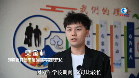 95后河南小伙樊金林头发微卷、穿着时髦,目前正管理运营4家养老院,担任养老院院长。