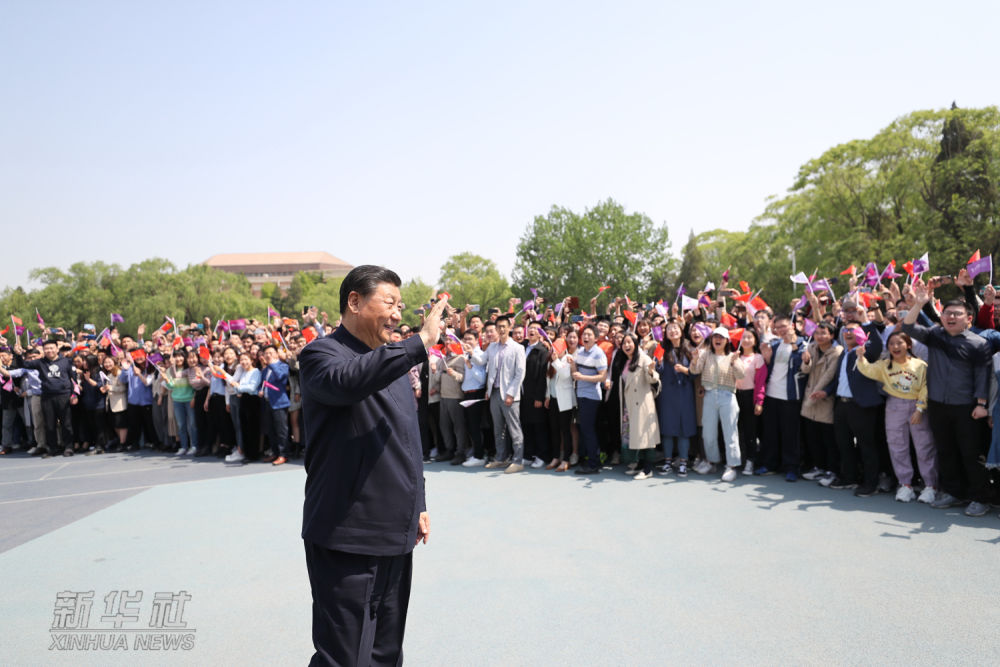 ↑2022年4月25日上午,习近平来到中国人民大学考察调研。这是习近平向师生们挥手致意。