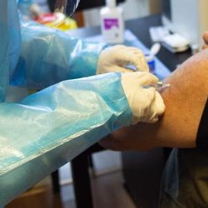5月10日,北京市第六医院的医生孙玲和护士曹晓枫、胡悦来到东城区北新桥街道的居民区,在街道和社区工作人员的协助下上门为三名老人接种新冠疫苗。新华社记者 陈钟昊 摄