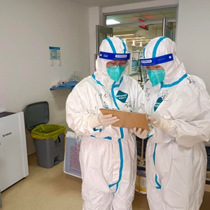转眼间,梅静骅在“疫”线坚守已近两月。同为中山医院的一名护士,他的妻子也一直在医院病房里进行日常照护工作。