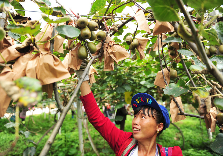 村民在六盘水市水城区米箩镇俄戛村采摘猕猴桃(2017年8月12日摄)。新华社记者 陶亮 摄